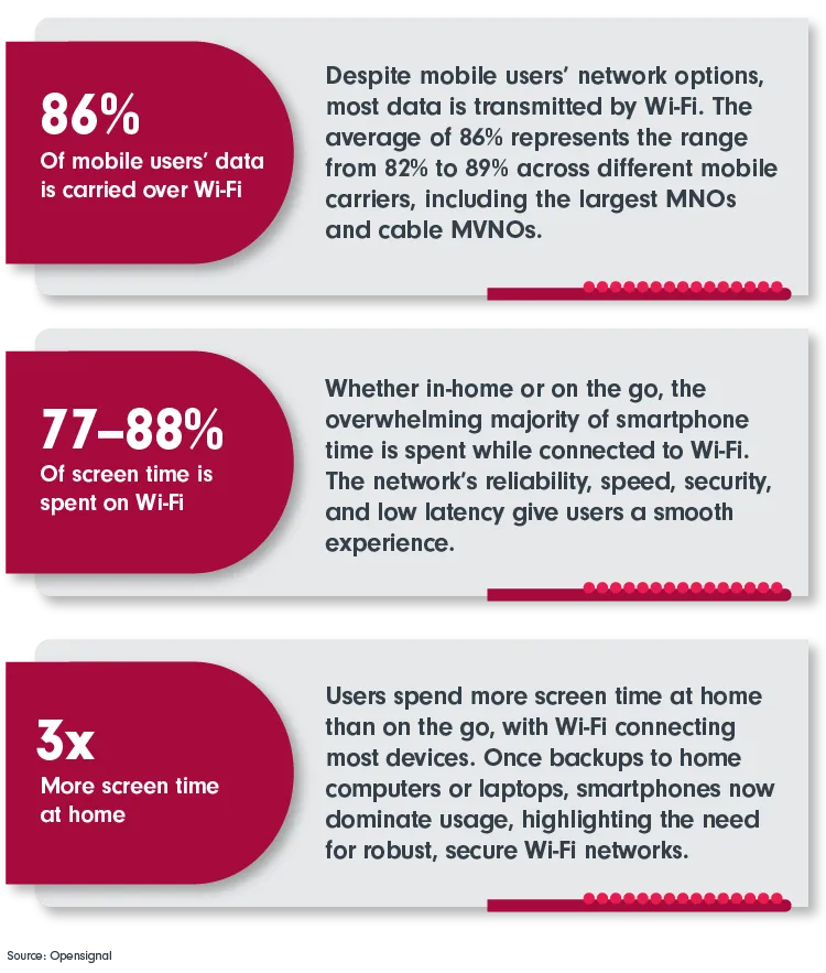 In the fall, Opensignal released a report about smartphone data consumption, focusing on how users connect to the internet. The report found that Wi-Fi overwhelmingly powers the smartphone experience, beating out mobile networks. These findings underpin the important role Wi-Fi and unlicensed spectrum play in the modern connectivity experience.