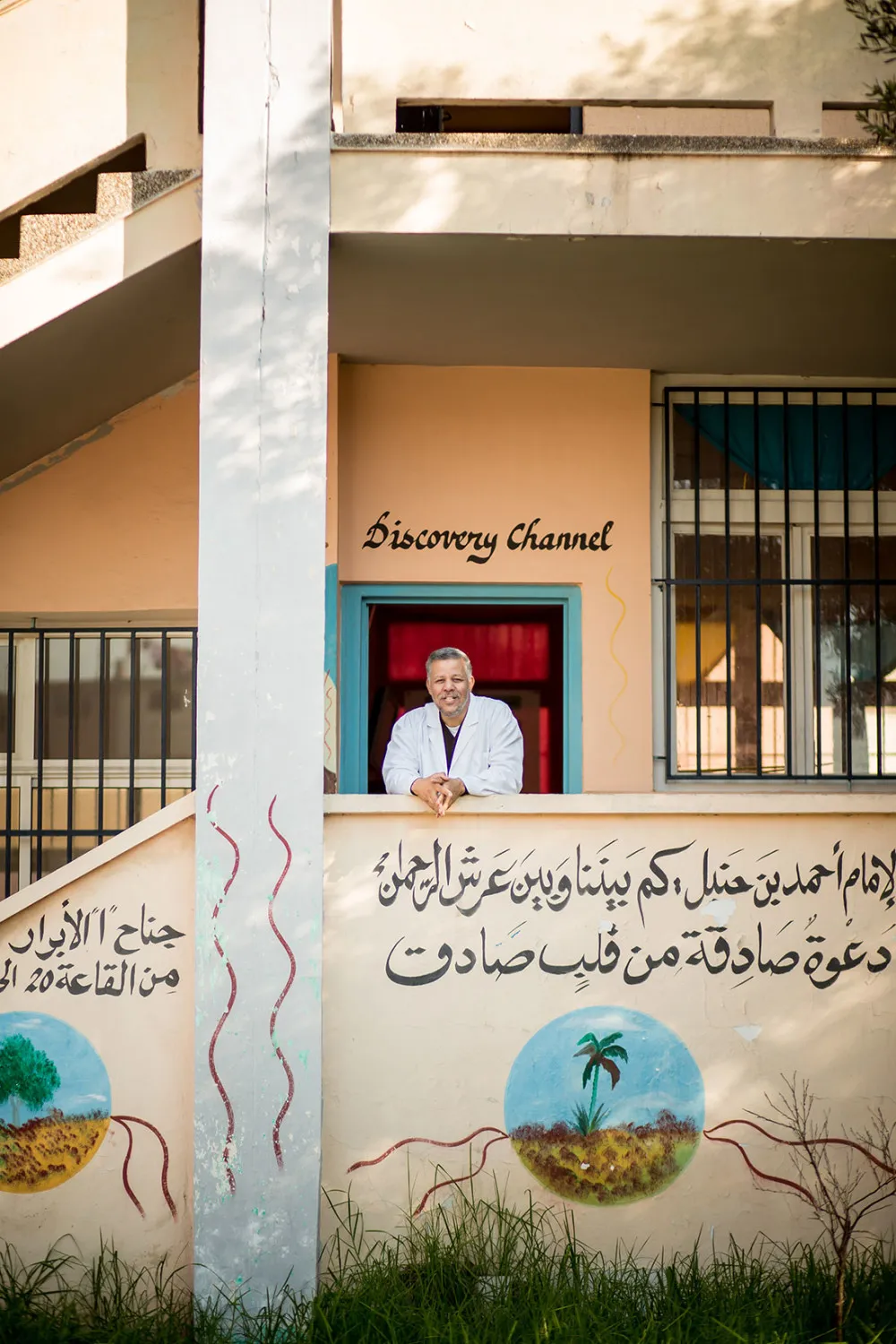 A teacher at a primary school in Morocco stands outside of the DLA Learning Center.