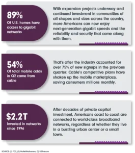 America’s broadband networks have consistently been built for whatever the future might bring, resulting in a powerful platform that continues to power the modern digital economy. As technological advancement surges forward, America’s broadband networks are continuing to grow with innovative new services and offerings.