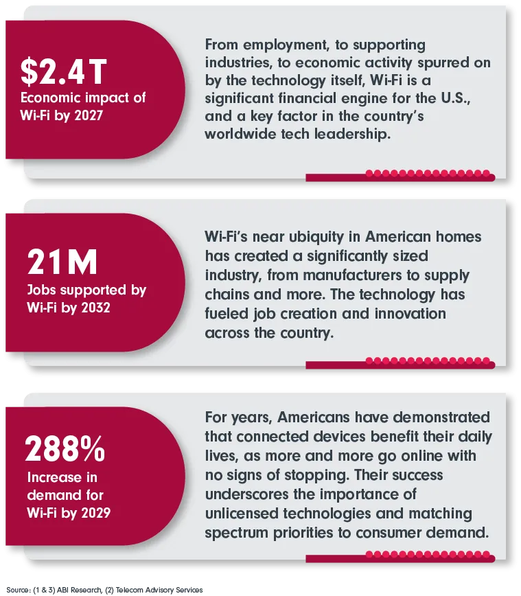 As America faces a growing spectrum crunch, the expansion of unlicensed spectrum is needed now more than ever. The technology (which carries Wi-Fi and other connected devices) is a major economic contributor, facilitating innovation and generating significant downstream benefits.