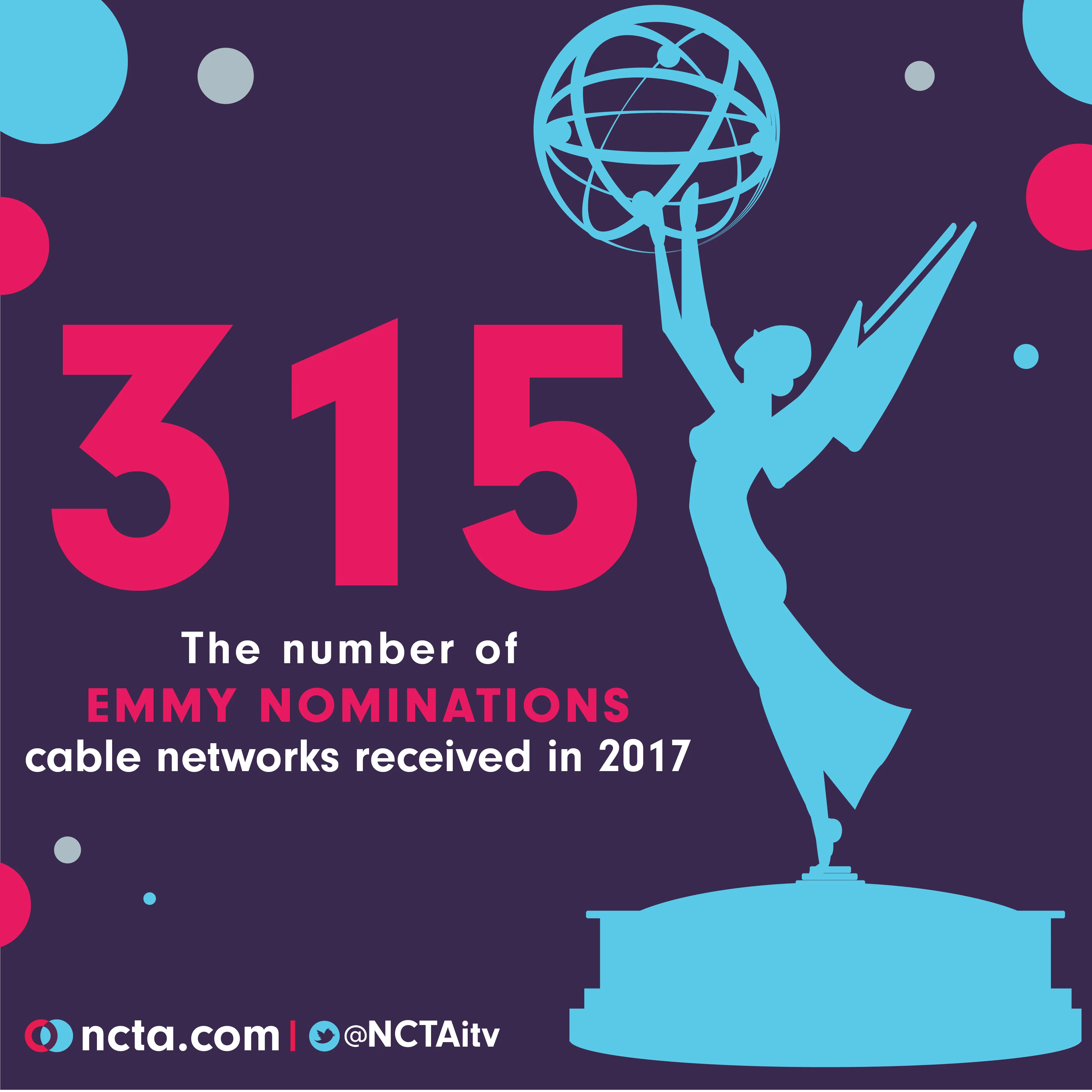 The nominations also reflect new trends in powerful storytelling; the Limited Series category this year is packed with star-studded projects such as Big Little Lies, FEUD: Bette and Joan, and Fargo. In fact, every single nomination in that category comes from a cable network. That’s no accident, cable networks continue to attract the top showrunners, directors, actors, and writers. Programmers invest billions of dollars each year to give us some of the most popular and critically acclaimed shows around.