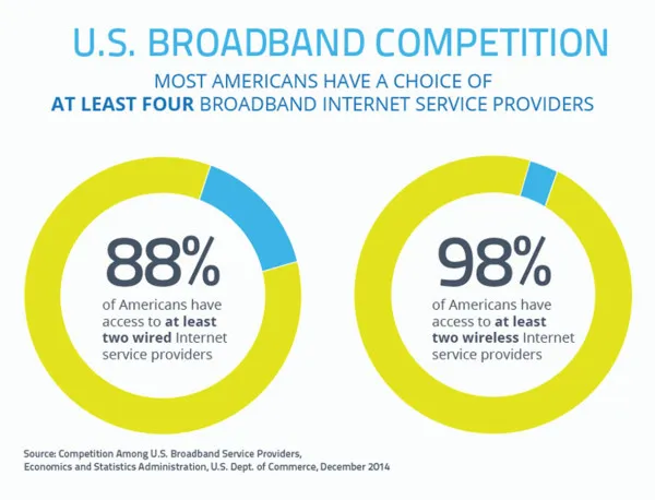 On NCTA.com’s Broadband By the Numbers page, we show that 88 percent of Americans have access to at least two wired Internet service providers and 98 percent have access to at least two mobile wireless providers. Not to mention 97 percent have access to at least three mobile providers. These are impressive stats, but only tell part of the story.