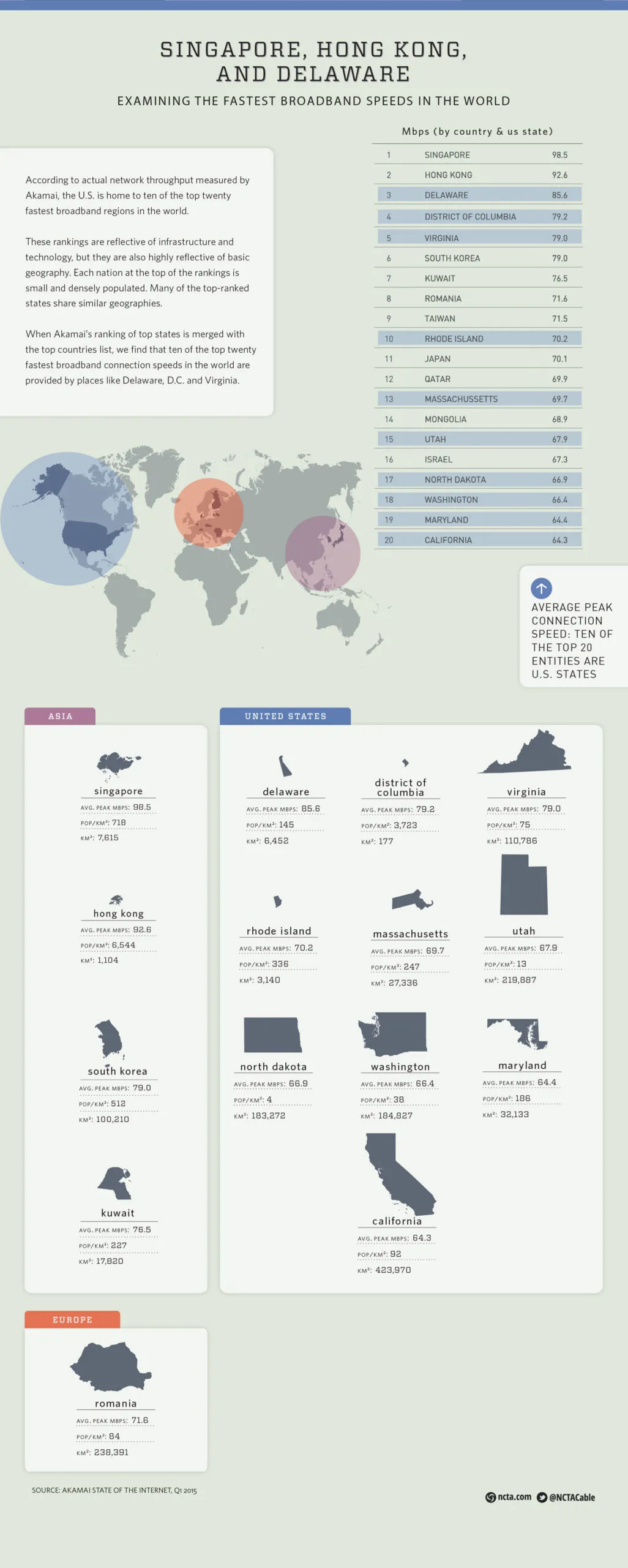 According to data from Akamai, the U.S. is home to ten of the top twenty fastest regions in the world.