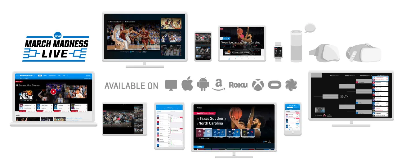 “We are everywhere the fan is, we’re across 16 platforms,” said Poole, which is a record number for the tournament this year and includes iPhone, iPad, Apple TV, Apple Watch, Android phone, Android tablet, Amazon Echo, Amazon Fire TV, Chromecast, Roku TV, and Xbox One, among others. While CBS is televising 21 games, the rest of the games–including the semifinals and championship game–are available via TV subscription on TBS, TNT and truTV, as well as the individual apps for those networks.