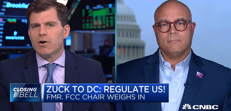 Last weekend in a Washington Post op-ed piece, Facebook CEO Mark Zuckerberg called for stronger government regulations in four areas: harmful content, election integrity, privacy, and data portability. Facebook has been under fire for quite some time now for data breaches, how it collects and uses customer data, its role in spreading misinformation, and multiple privacy scandals. Yesterday, NCTA President & CEO Michael Powell appeared on CNBC to weigh in on the conversation and offered insights into Facebook's recent efforts in this space, what Zuckerberg's request might mean for policymakers